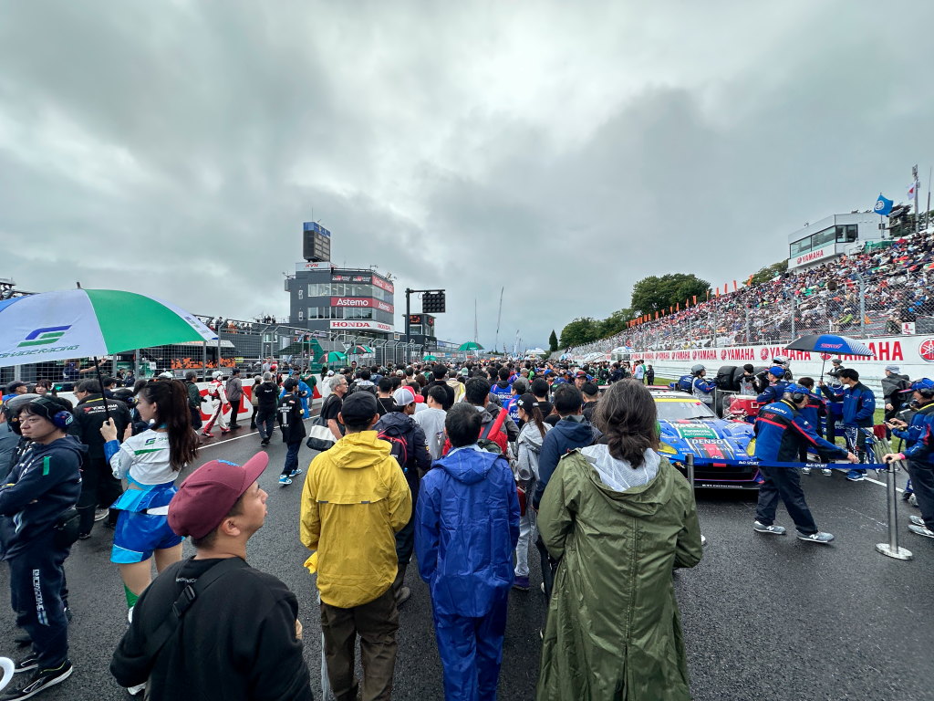 天候のためスケジュールの大幅な変更があり、グリッドウォークはわずかな時間しかありません。グリッドにはGTマシンやドライバーはもちろん、メカニック、レースアンバサダー(旧レースクイーン)、その他関係者で溢れており、写真を撮ったり挨拶をしたりと、ファンが一番お気に入りのチーム、選手に近付ける時間です。