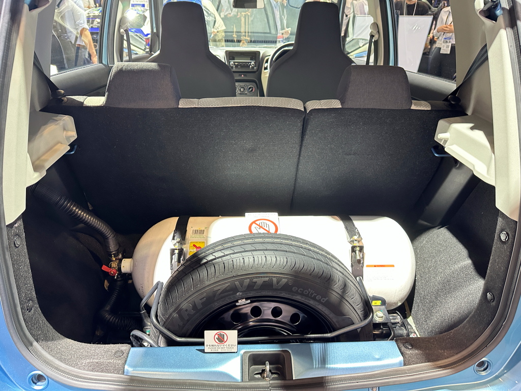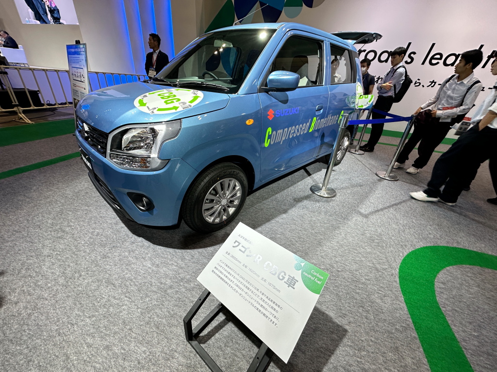 昨年のJMS2023に展示されていたが、今回始めて予約詳しくお話を聞くことができました。そもそもインドでは、既にガソリン-CNG切り替え型バイフュエル車が走っており、マルチスズキでのCNG車のラインアップは15モデル、そのシェアは7割にもなるのだそうです。