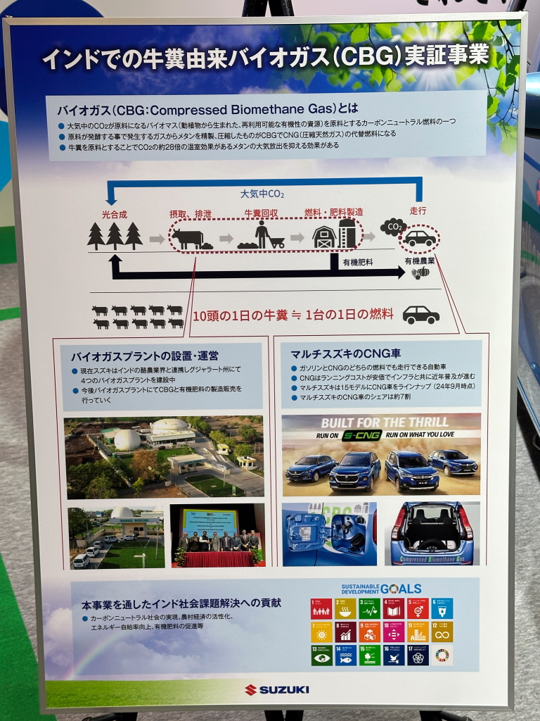 スズキは、マルチスズキとしてインドで強いシェアを持っており、インドで牛は神聖なものなのは周知のとおり。その牛のうんちからメタンガスを発生させて、それをエンジンのガス燃料として使用するというもの。牛はもちろん食用で飼われているのではなく、多くは乳牛として飼育されているのだそうです。