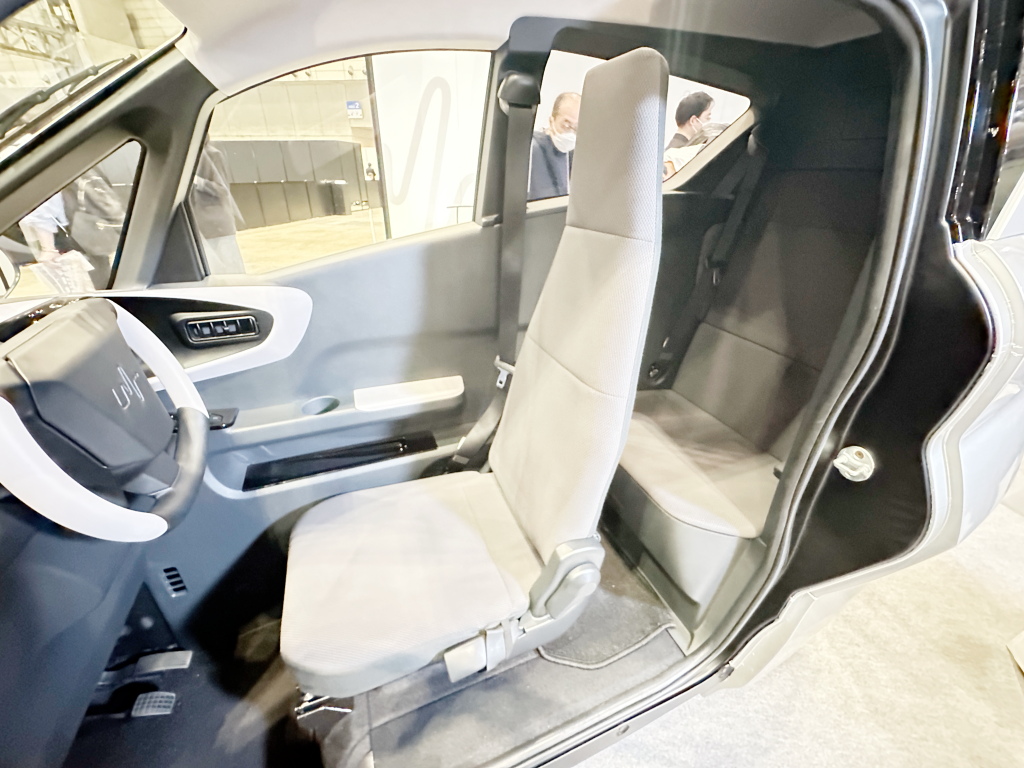 車体広報のリヤウインドウがありそうな位置に見えるルーバー内には、エアコンユニットなどが取り付けられていて、i-ROADにはなかったエアコンが装着されているとのこと。