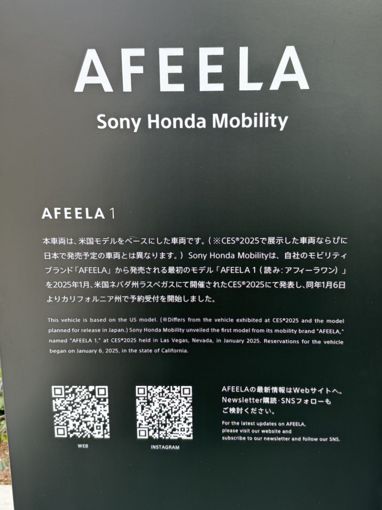 今回、Sony Parkにて展示されている車両は、CES2025で公開されたものとは違っており、北米仕様に準じたものとのこと。