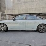 ボディカラーは、「Tidal Gray」、「Calm White」、「Core Black」の3色展開。展示車は、わずかに薄緑掛かったグレーで、マットカラーではありませんが、ツヤツヤに光るものではなく、いわゆるアースカラーに含まれるものです。