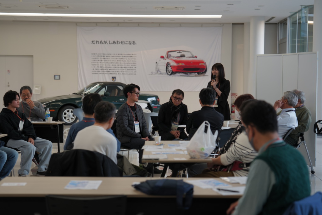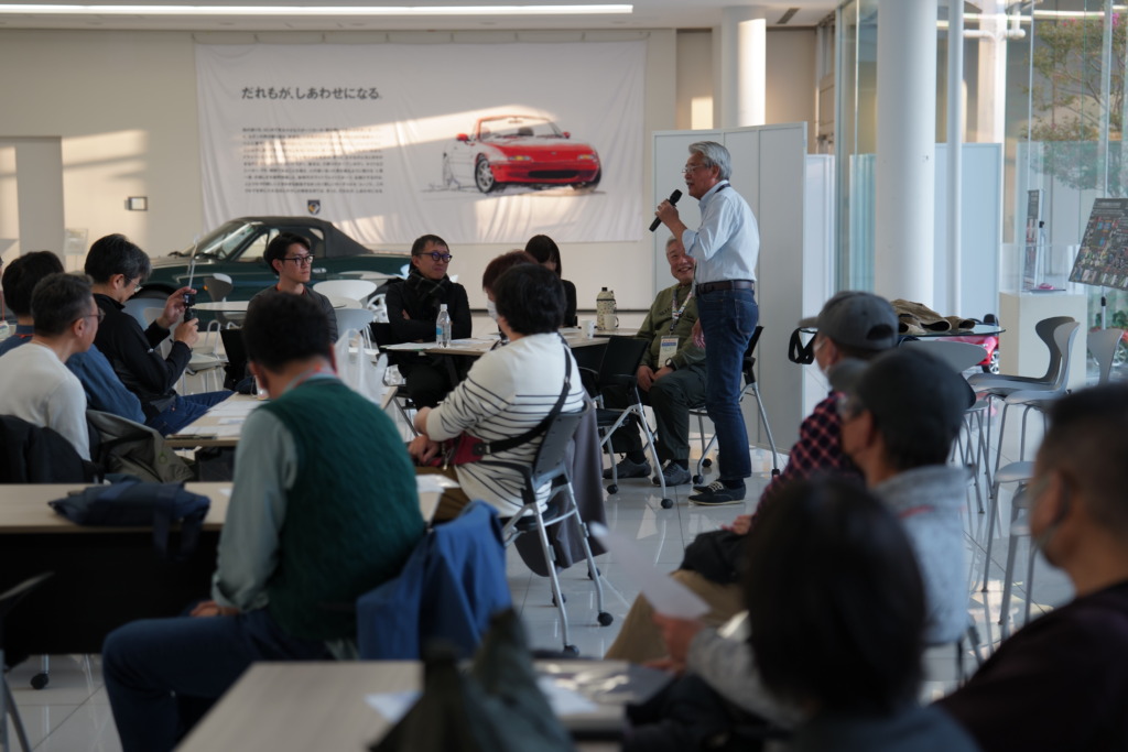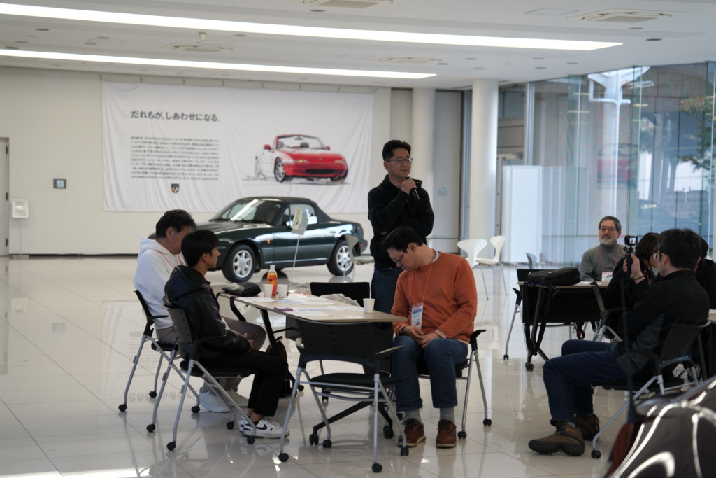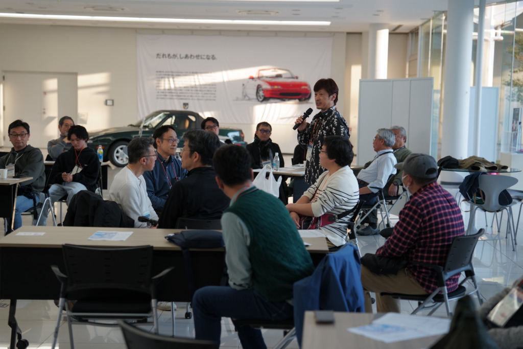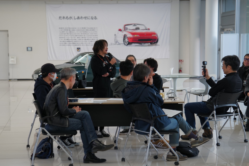 イベントはまず、初心者もベテランも同様に自己紹介から始まります。ロードスター歴はもちろん、どうして好きになったのか、どんなカスタマイズしているのかなど様々ですが、2シーターのオープンとのことで、パートナーや家族の理解度に関するコメントも目立ちます。何人かは嫁や家族に内緒で買った、という人もちらほらと。