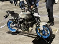 ジャンルとしては、ストリートスポーツモデルとも言えるMTシリーズですが、夜に走って都会のネオンや高速の照明の中でバエるデザイン、カラーリングを目指しているわけで、ホイールの蛍光パステルカラーを差し色に使ってきたのも、そういうシーンで目に残像が残るようなイメージを狙っているからのようです。