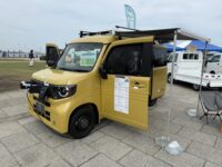 ちょっとおもしろいなと思ったのがホンダの電気軽バン「N-VAN:e」向けのホンダアクセス製純正アクセサリーです。N-VAN:eは、電気自動車らしく、外部給電コードをつなぐことで、100ボルトを供給できます。さらに車中泊などで快適に過ごせるよう、キャンピングカーのごとく外部電源入力、ソケットもオプションで用意されています。この2つを組み合わせることで、自分で外部給電した電力を車内に引き込むことができるわけです。外に出たものが中に入って戻ってくるわけですが、じゃあ最初から内側にコンセントをつけておけばいいじゃないと言う気もしますが、そこは本当に必要な人がどれほどいるかわからない上で、コストアップにつながる用品を標準装備するのもナンセンスと言えるのです。