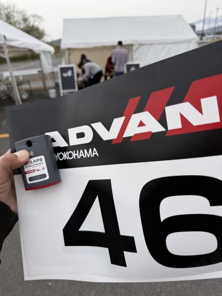 指定駐車場のCパドックに到着し、受付で、ゼッケンとタイム計測器を受け取ります。そうです。FSWのラップタイムを計測してくれるんです。子供の頃のテストで点数付けられたときみたいに緊張しますね。