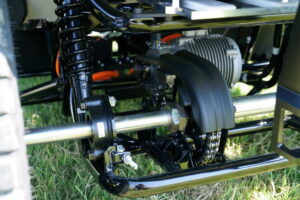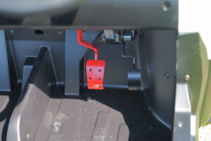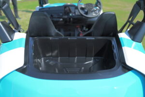 C580は、小型特殊車両なので、最高速度は15km/hとされています。オートサロン出展時は左ハンドルだったのですが、これを右ハンドルに変更し走らせるためではなかった。デザイン展示のためシートポジションも人が座れるようなものではなかったのを、ちゃんと運転できるドライビングポジションを決められるような手直しもされたとの事でした。