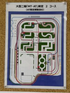 そのS字、クランクなどを含んだコース走行はAコース、Bコースがあり、決められたルートを覚える必要があります。最初から覚える必要はないんですが、ある程度時限が進んでいくと、教習開始時に「今日はAコースを走りましょう」とか「ABどちらでも好きな方から練習してくださいね」などと言われます。その段階で「あれAコースってどう走るんだっけ?」では練習にならず、結果として非常に時間がもったいないのです。なので、その前の教習が終わった時点で、次回はどういう走りをするのかを教官等に確認するのが良いかと、後になって思いました。