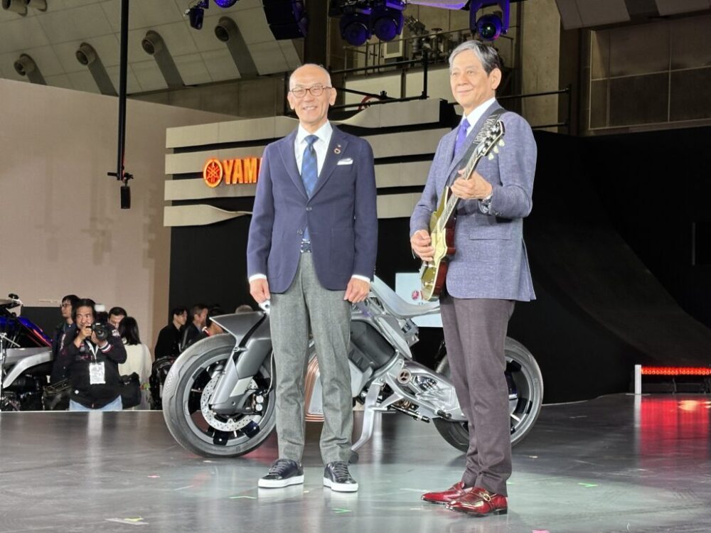 前置きはともかく、起源もブランド名も同じヤマハ株式会社とヤマハ発動機ですが、意外なことにコラボした商品はほとんどなかったようです。けれど、デザイン部門での交流、体験型インスタレーション「e-plegona(エプレゴナ)」の共同制作、モーターショーやモビリティショーでのヤマハ発動機ブースの音響をヤマハが担当したり、2023年のモビリティショーでは両社社長がプレスカンファレンスに登壇しました。