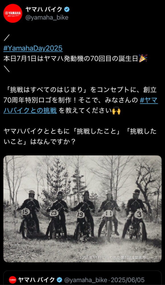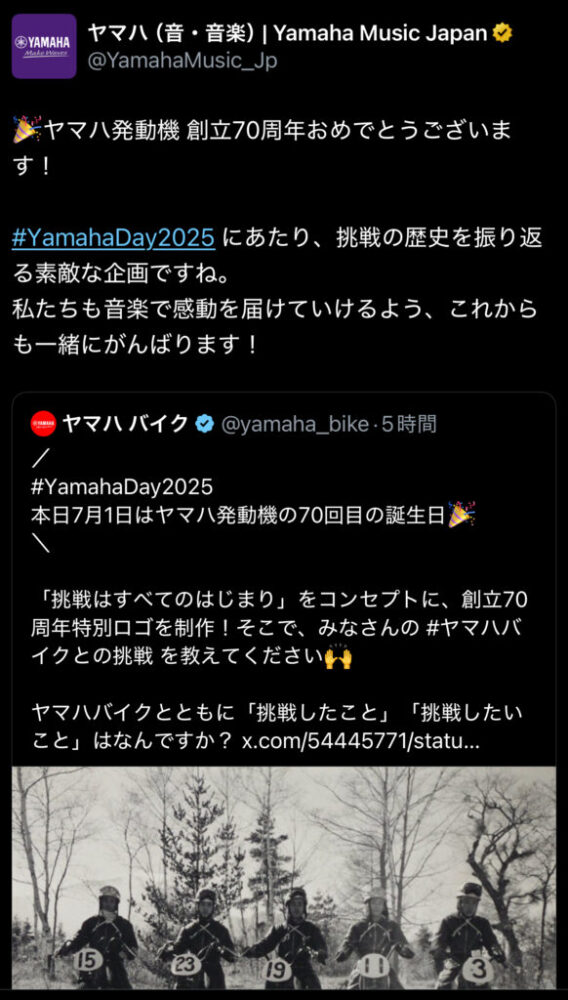 楽器のほうのヤマハ株式会社もお祝いのポストを投げていますね。