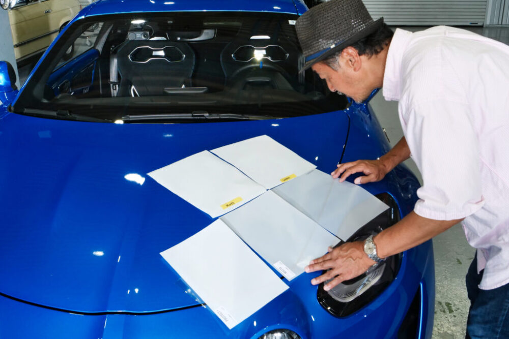 石黒 そうです。だから、全体に貼るのでなく、飛び石を防ぐためにフロントにだけ貼ったり、駐車場で自転車置き場になっている左側にだけ貼る、なんて使い方もあります。それと、高級車を中心にマット塗装が登場してからは、艶消しのフィルムも出てきました。普通の透明フィルムを貼るとマット塗装が艶ありになてしまいますから。逆に、裏技的には艶あり塗装に艶消しフィルムを貼ると、マット塗装のように見えます。イメチェンができますよ。